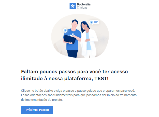 É importante que estejam presentes na ligação o responsável pelo fechamento do contrato com a Doctoralia, o administrador/coordenador de recepção, bem como todo time de atendimento. Sinta-se à vontade para convidar outros colaboradores que também farão uso da plataforma.