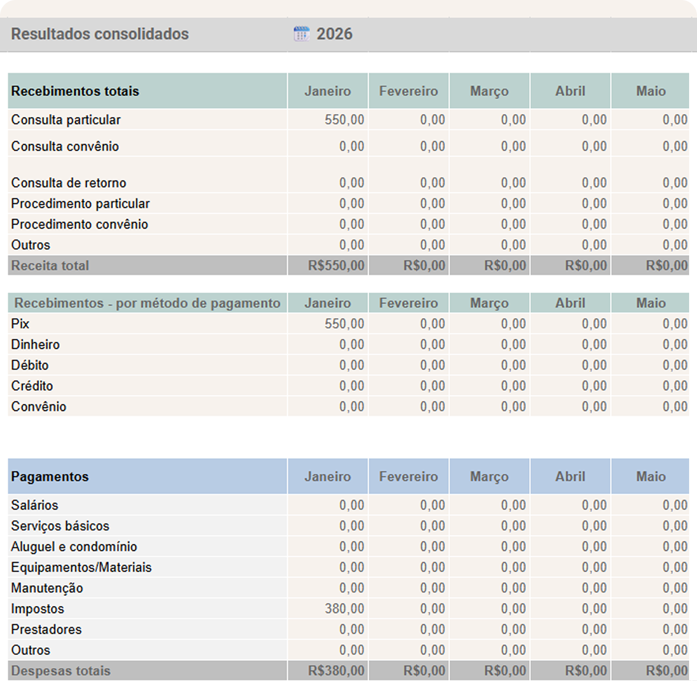 Planilha de controle financeiro para consultórios