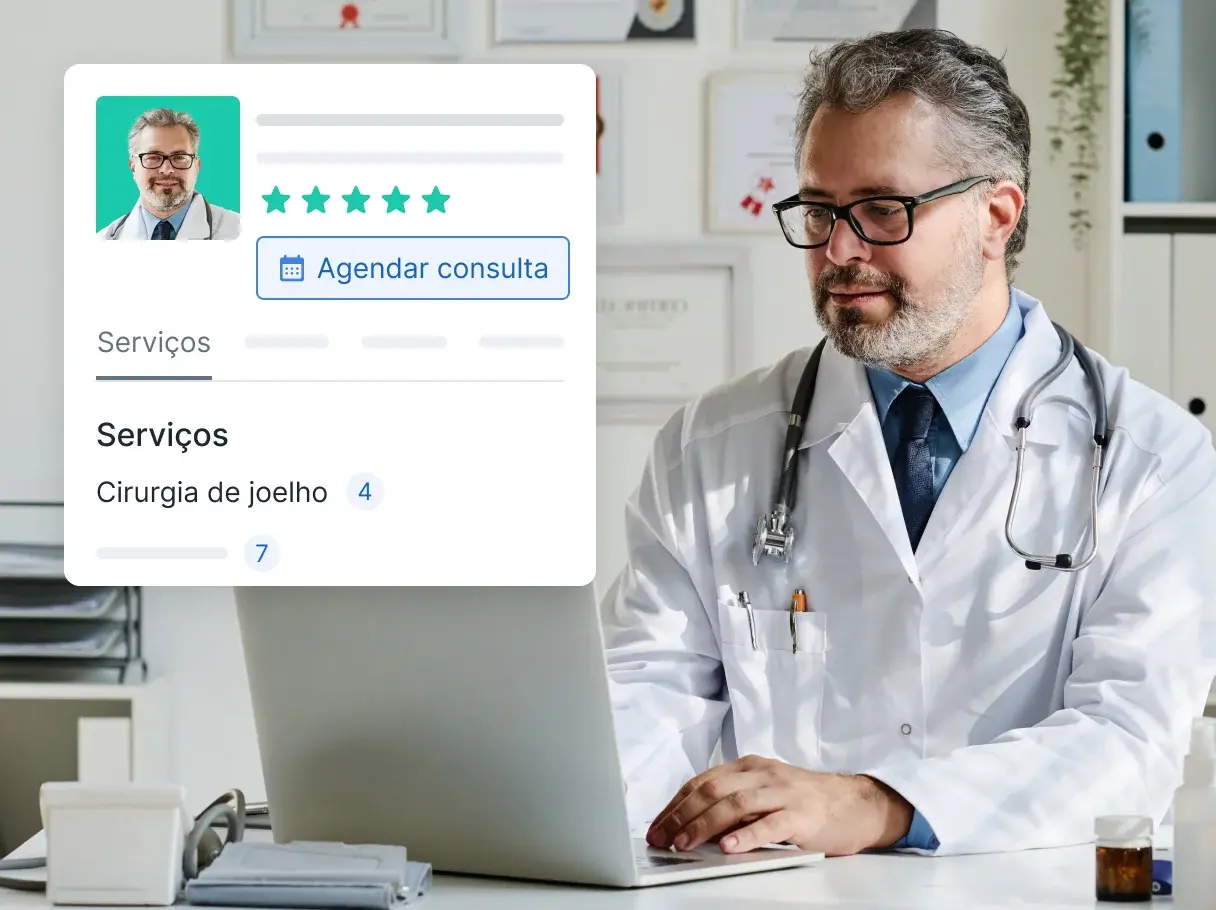 Sua vitrine profissional para construir sua reputação no digital e atrair mais pacientes.